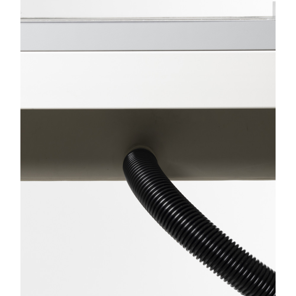 - support table dim. 1200x600xh.865 mm, with steel structure coated with acid-proof epoxy powder paint, white colour RAL 9010, sliding on swivel castors(2 with stop) and worktop in fire-retardant and water-repellent laminate with rounded ABS shockproof borders;
