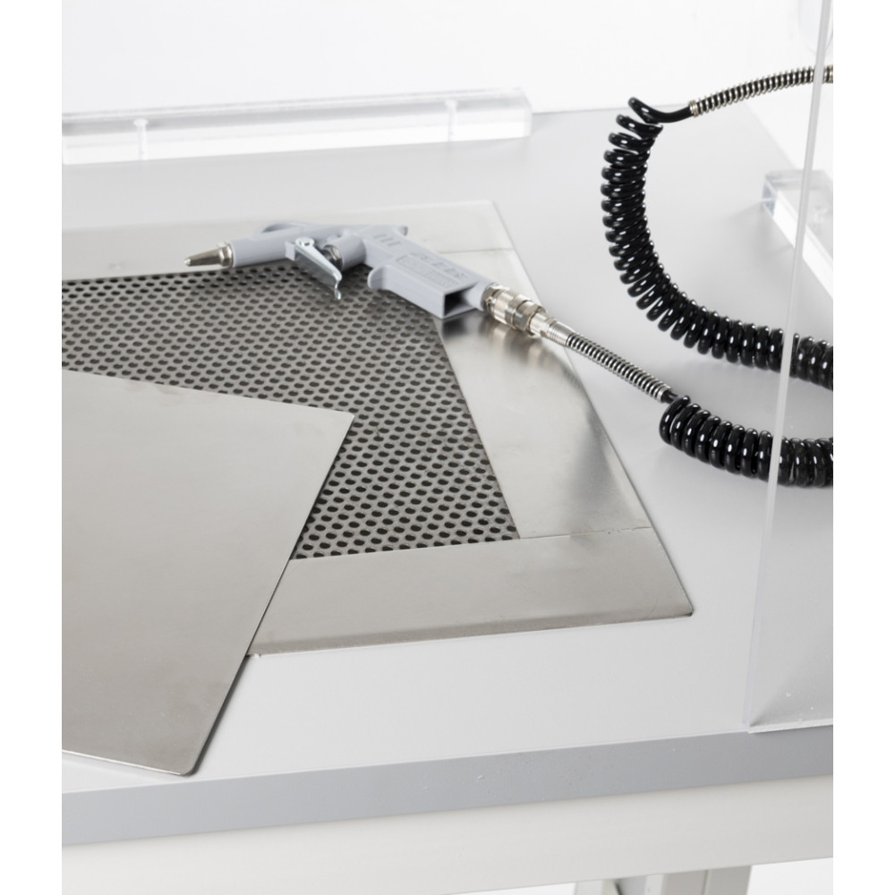 - compressed air connection with blow gun, 1 m spiral tube and pressure regulator (compressor not included);