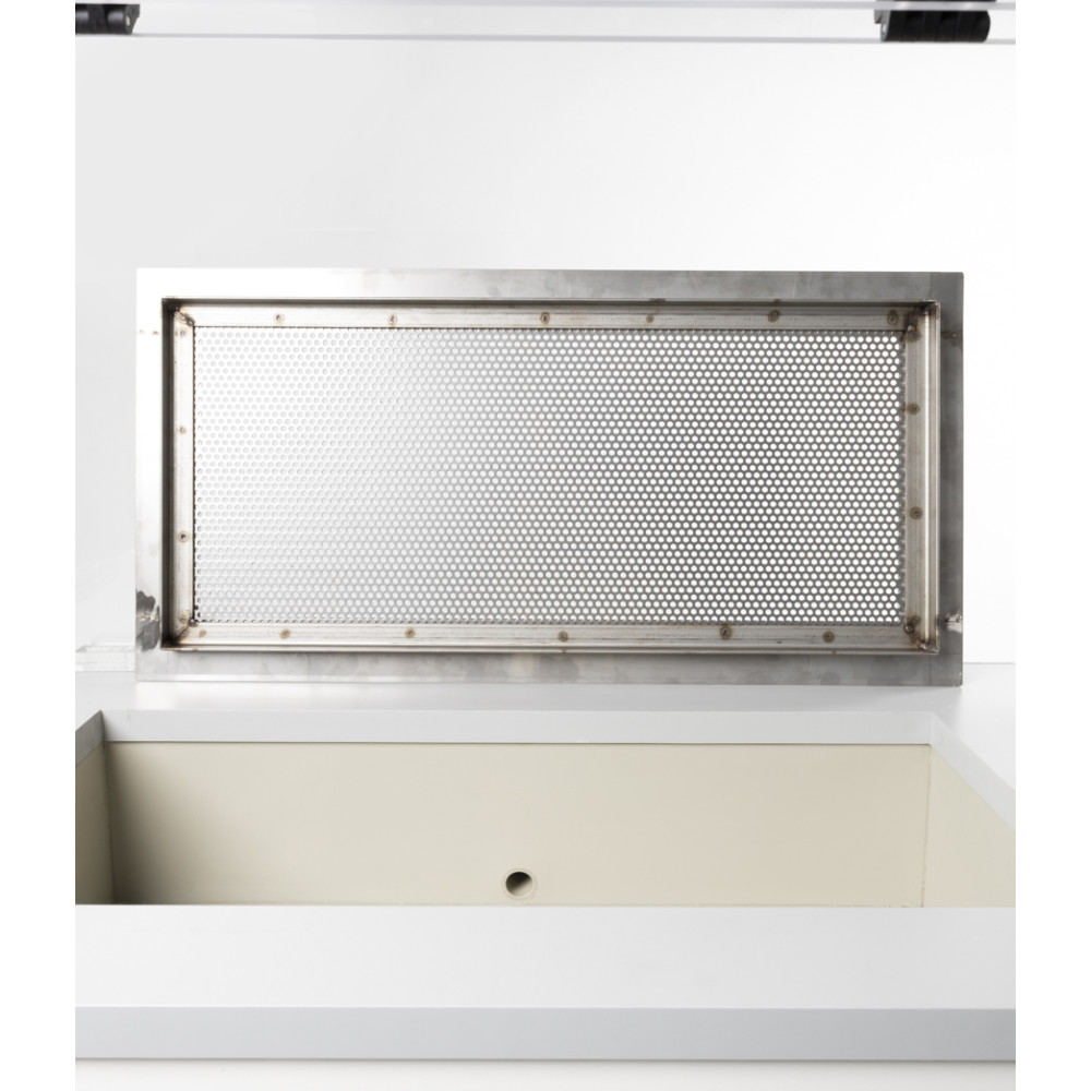 - suction drawer, built into the worktop, dim. 740x340 mm, in PVC with sleeve for connection to suction, equipped with grilled surface dim. 670x275 mm with holes ø 2 mm approx. and lid, removable, in stainless steel;