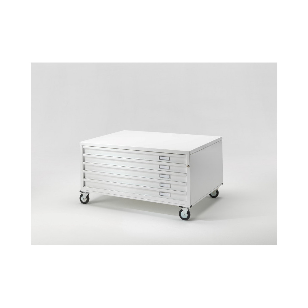 - stackable modular structure made of epoxy powder-coated sheet steel, color glossy white RAL 9016. The sliding of the drawers is on removable bearings, lock with simultaneous closing of the drawers, built-in recessed handles along the entire drawer front, and chrome-plated metal card holder.