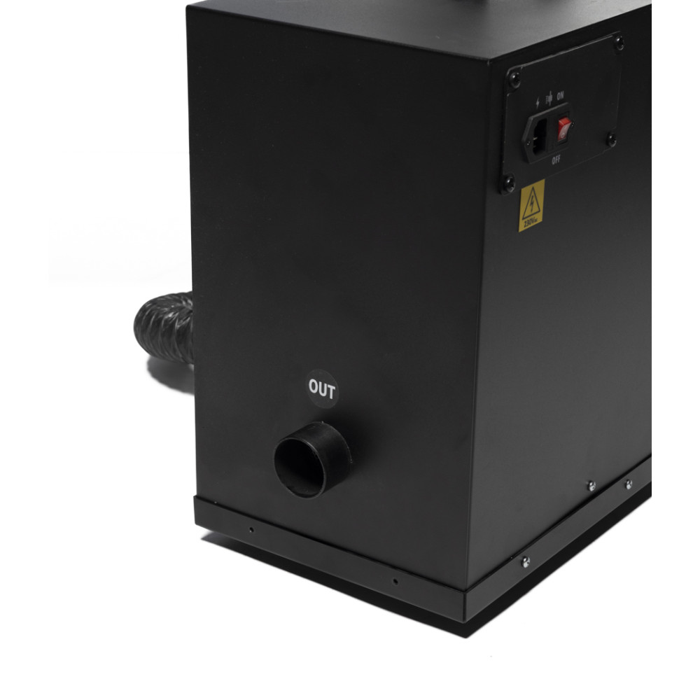 - Abluftausgang auf der Rückseite des Gehäuses (auf Anfrage ist eine Kanalführung für Außenabluft erhältlich)
