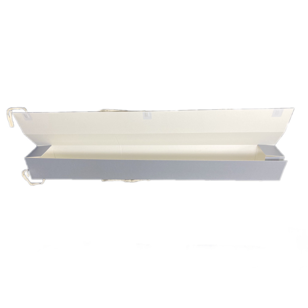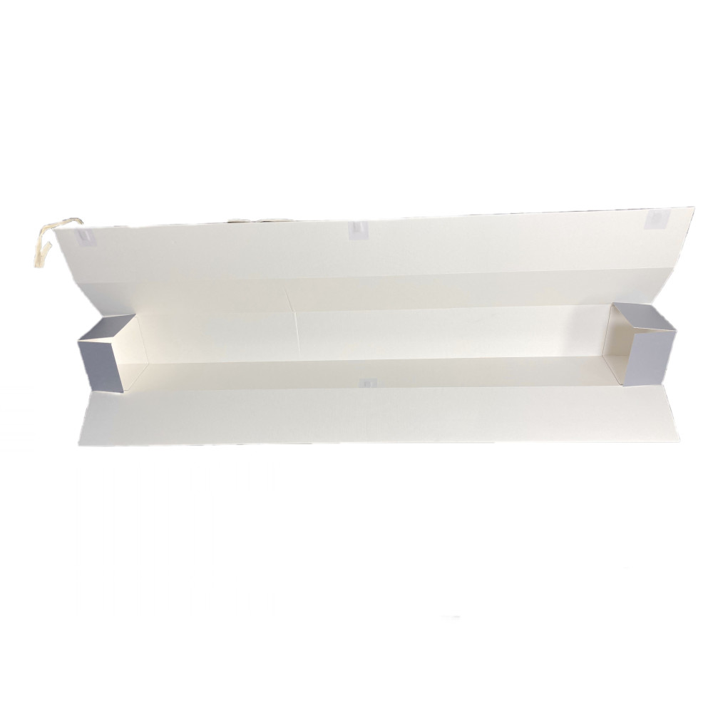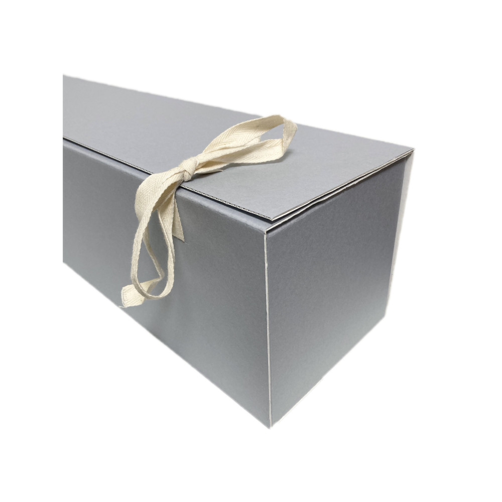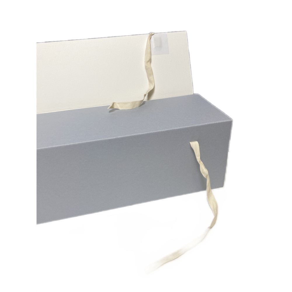 “Giacometti” tube boxes are made from Duralong Wave archival micro corrugated board, ideal for long-term horizontal or vertical storage. Thanks to their square shape they can be easily stored vertically or stacked horizontally. The totally open dropfront flap on the long side allows easy access to contents; the box closure is assured by means of three cotton tying tapes. Easy and quick to assemble. TECHNICAL SPECIFICATIONS • 100% Cellulose • Buffered (calcium carbonate reserve) • pH 8.5 - 9.0
