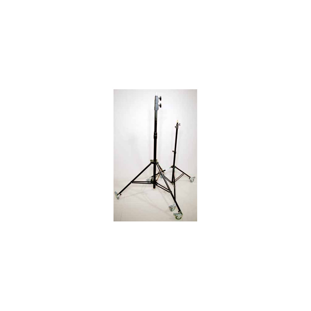 stand with 3 spoke base and 3 telescopic extensions. Base ø max 86 cm – h min. 106 cm. h max 352 cm. Weight: 2.52 kg