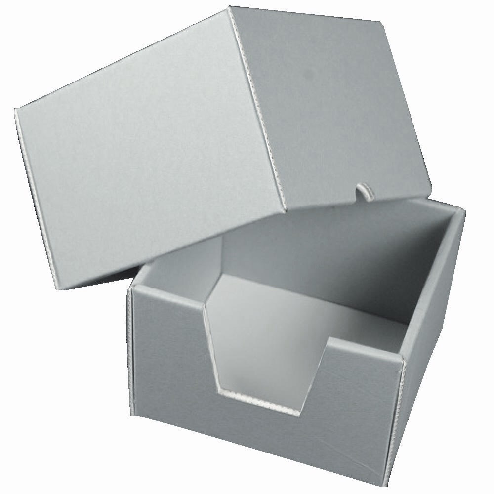 Die "BRONZINO"-Stülpboxen mit abnehmbarem Deckel werden aus Duralong Wave-Mikrowellpappe hergestellt, ideal für langfristige vertikale Lagerung. Die robuste und solide Konstruktion mit doppelten Wänden an allen Seiten und einer dreifachen Kartonschicht an Boden und Deckel verhindert eine Verformung des Kartons und macht ihn besonders geeignet für die Aufbewahrung, auch gestapelt, von schweren Werken, Fotoplatten und CD. Sie lassen sich leicht zusammenbauen, dank der Verstärkungspappe an Boden und Deckel, die die doppelten Wände blockiert und einfach mit einem kleinen Quadrat aus säurefreiem doppelseitigem Klebeband befestigt wird.