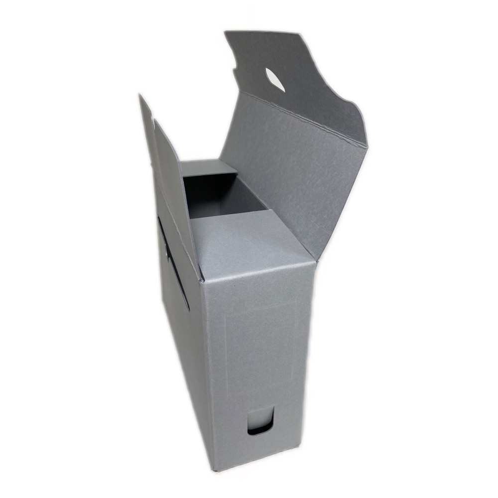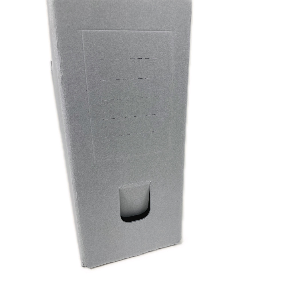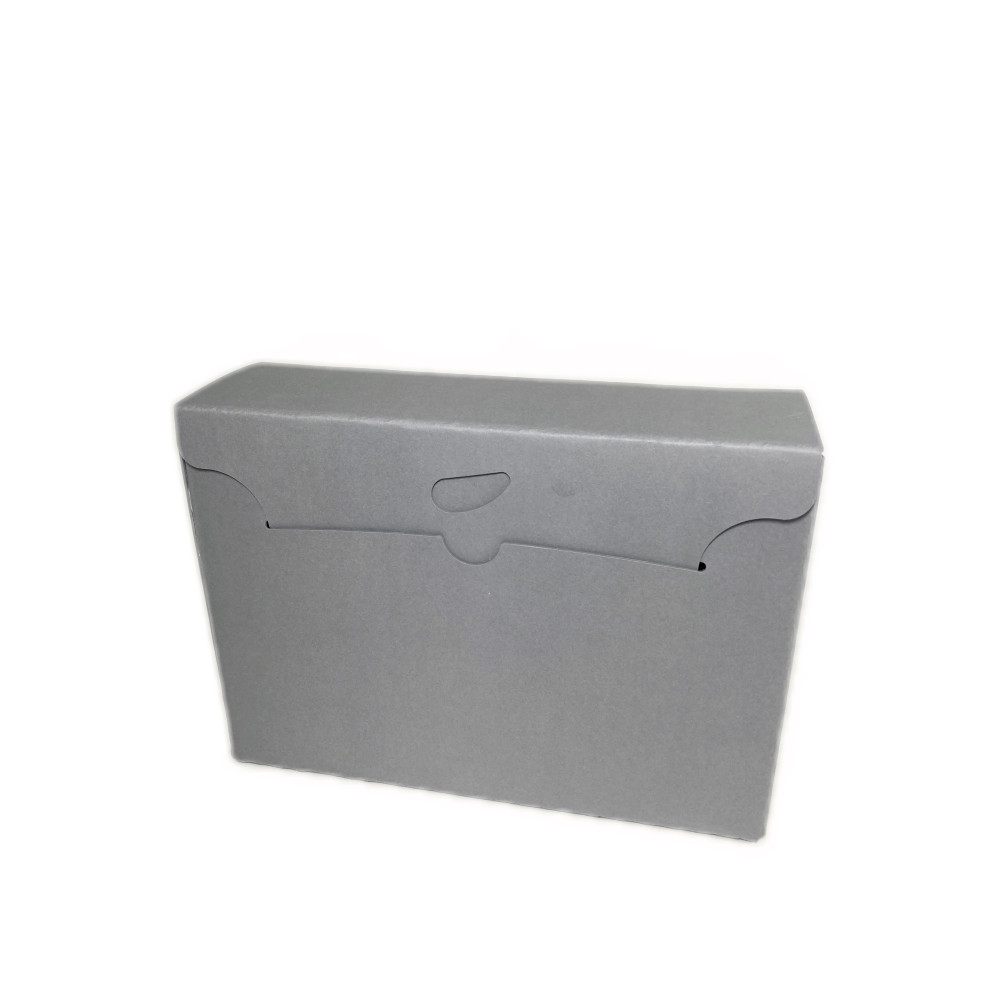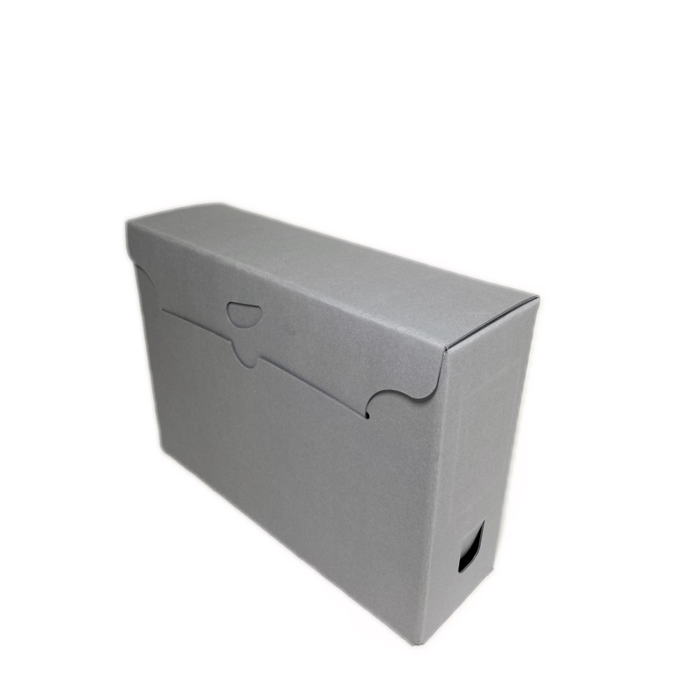 "Petrarca" hinged-lid boxes are made from Duralong Special archival board, ideal for long-term vertical storage of documents. The drop-front flap which opens on the long side allows easy access to contents. the lid closure is interlocking. The handling of the box is facilitated by the practical hole for the fingers. The boxes are shipped already assembled, but simply flattened to reduce volumes during transport.