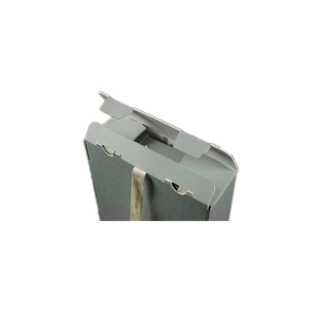 “Angelico” boxes with drawers are made from Duralong Wave archival micro corrugated board, ideal for compact horizontal storage of a remarkable quantity of slides. The complete kit includes an external box with front opening with self-blocking closure and inner drawers that can be pulled out by means of a herringbone cotton tying tape (the drawer number depends on the box style). The access to contents is easy and quick and can be done without removing the box from the stack.