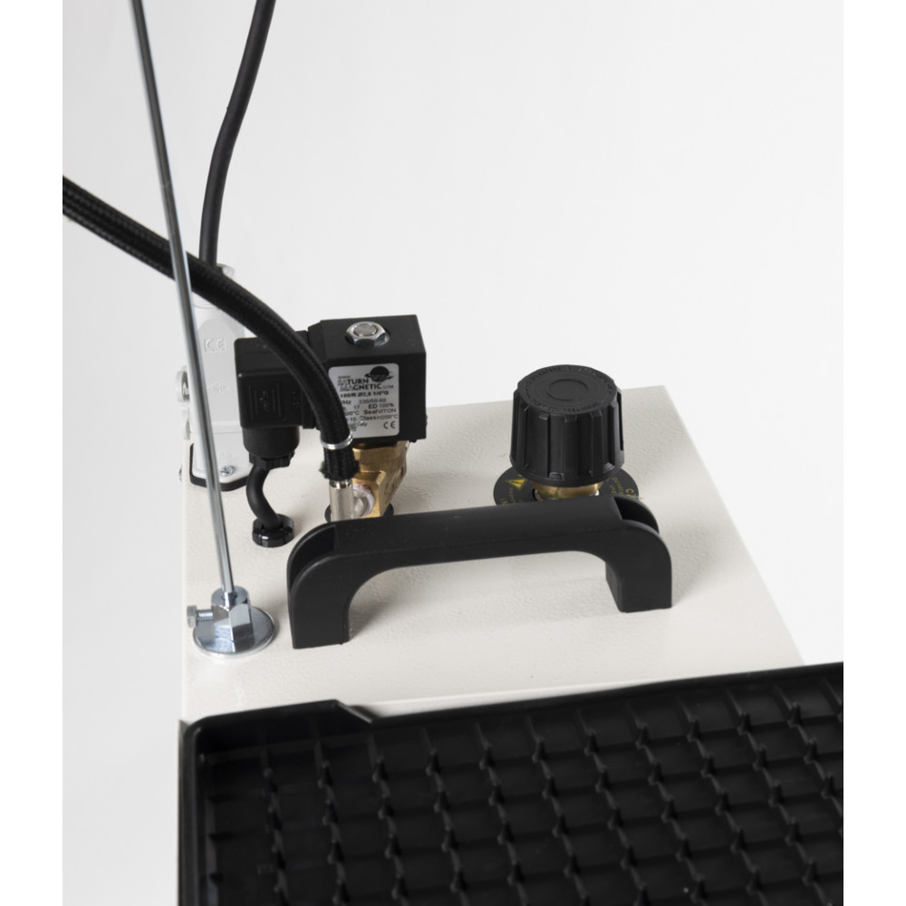 -a wheeled steam generator with pressure cut-off regulation, thermic heating element protection, electric valve with steam flow regulation, visual water level control, steam warning light, water emergency warning light, n. 3 safeties and drain cock,