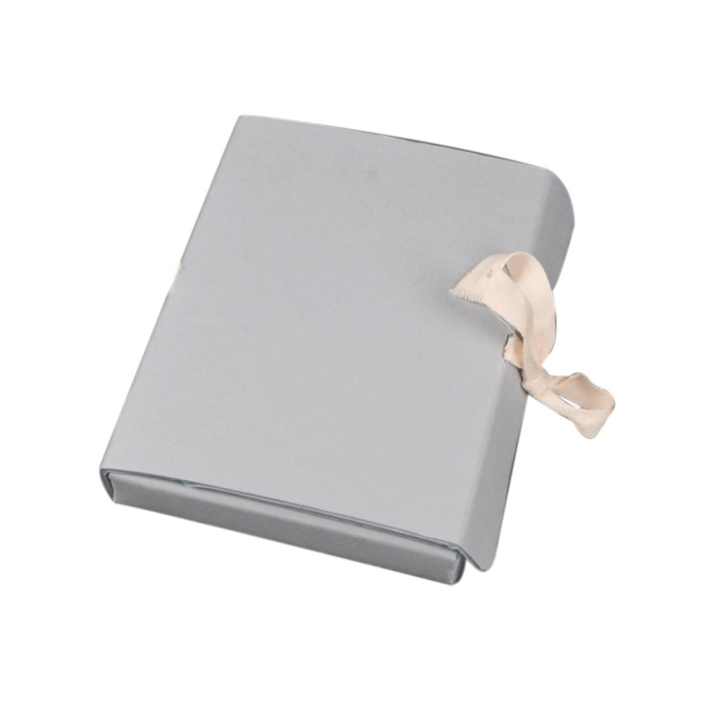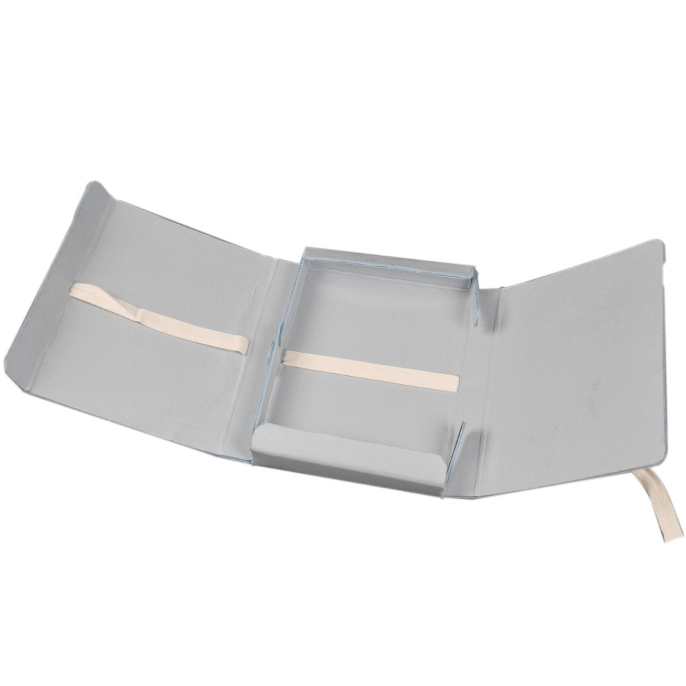 Las archivadores de solapas “Caravaggio” se fabrican con cartón de conservación Duralong Special. Se fabrican en una sola pieza con dos solapas grandes, dos pequeñas y cuatro aletas internas, dos de ellas de encaje (véase detalle en la foto). Están diseñadas para quedar totalmente cerradas y proteger las obras del polvo. Tienen de una práctica cinta, pasante no pegada, de algodón espiga para el cierre.