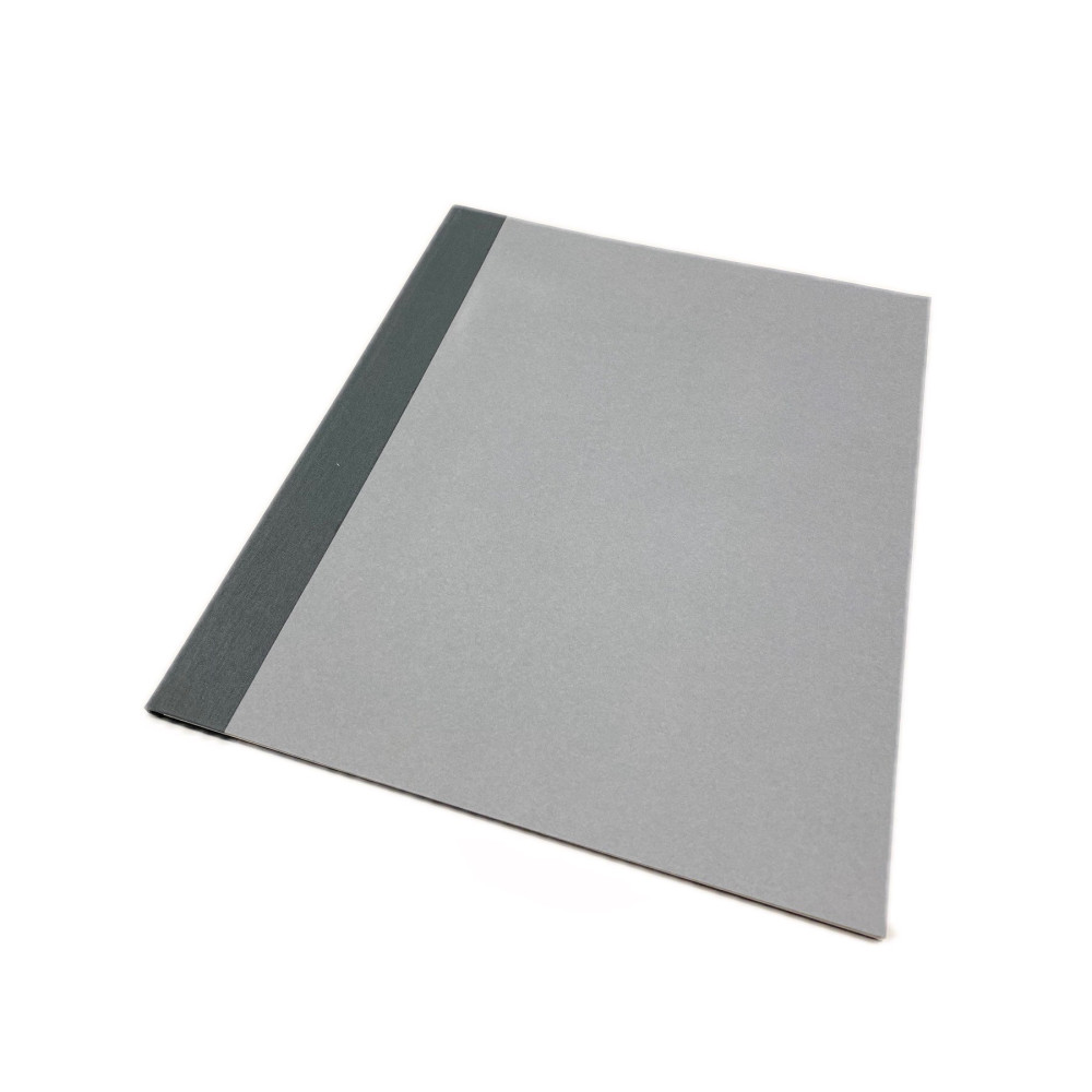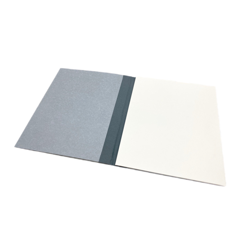 Las carpetas para documentos "Paganini" están hechas de una carpeta de 4 pliegues tipo "Michelozzo", realizada en papel Duralong PaperPhoto, fijada dentro de una carpeta rígida portafolio en cartón Duralong Special de 1,4 mm de grosor. La parte posterior de la carpeta exterior está reforzada con una tira de lona gris oscuro.