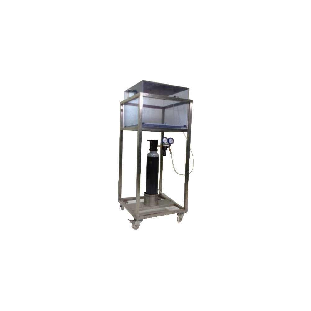 - a wheeled support frame in stainless steel with upper shelf for the bath and support for the carbon dioxide cylinder;
