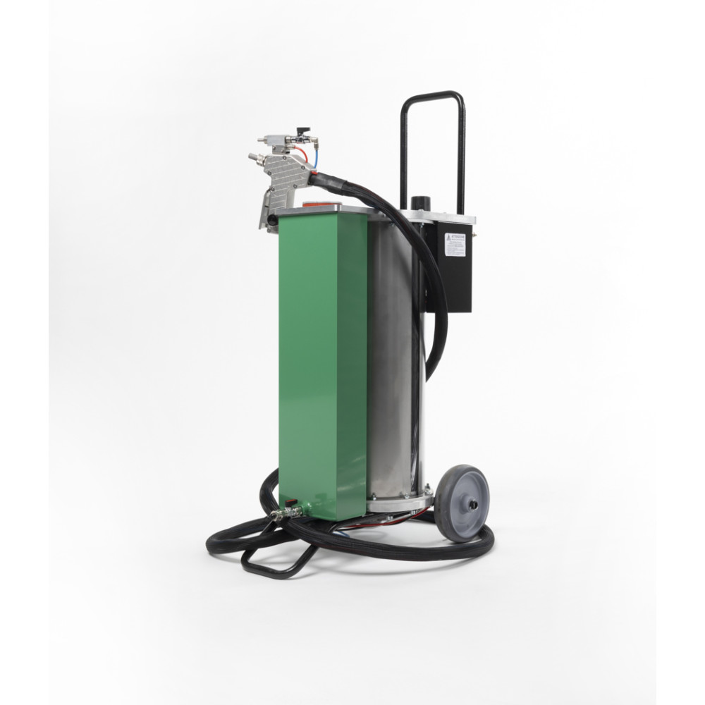 - un réservoir à colonne pour poudres, avec entonnoir de remplissage et couvercle de protection