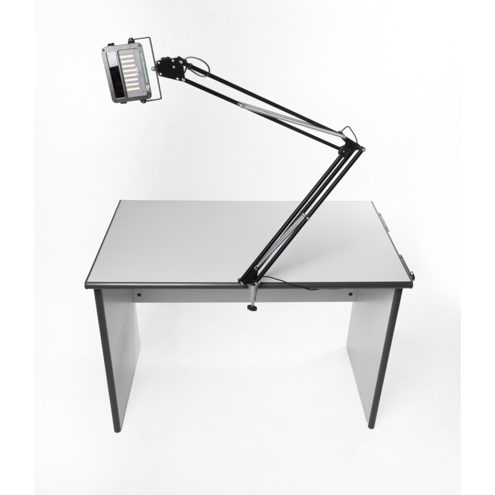 - braccio snodato a pantografo, lunghezza totale 110 cm., con pulsante ON/OFF a due posizioni (luce naturale e luce U.V.);