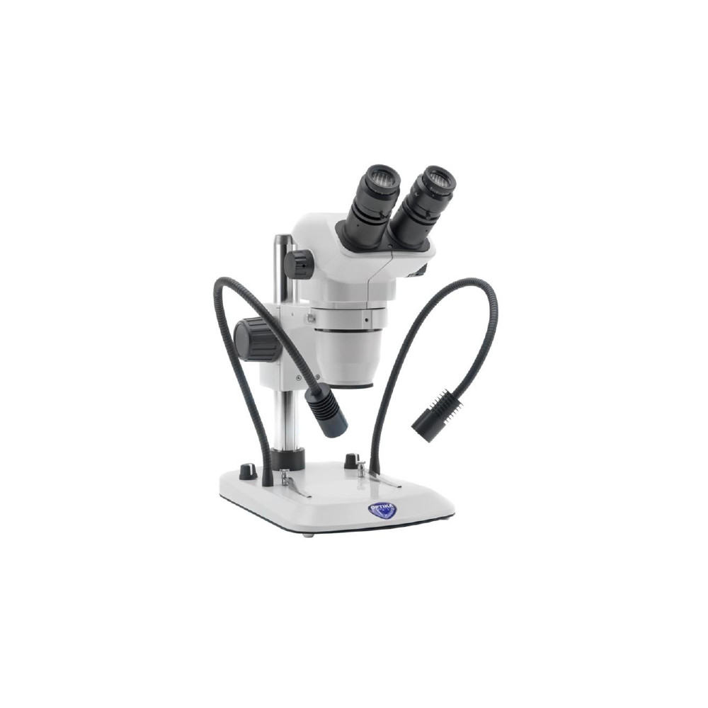 - testata ottica trioculare SZX-T, inclinata a 45° e ruotabile di 360°, con obiettivo a zoom da 0,67x a 4,5x; distanza di lavoro 110 mm; regolazione interpupillare 51-75 mm; regolazione diottrica +/– 5 diottrie; terzo tubo oculare che permette il collegamento a macchine fotografiche (tramite appositi accessori) o telecamere;